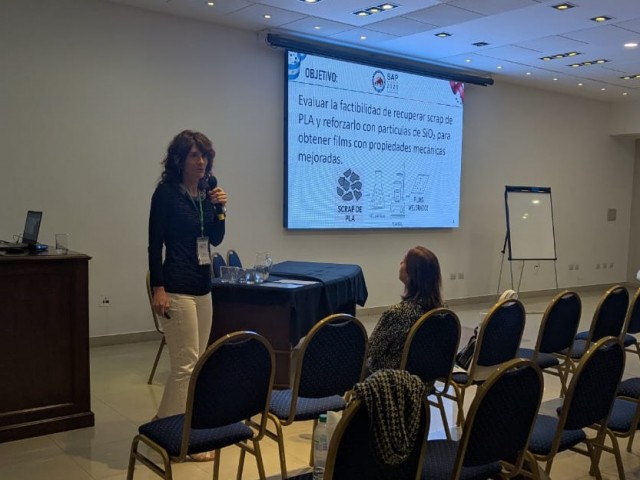 “Valorización de scrap de impresión 3D mediante incorporación de dióxido de silicio en films de ácido poliláctico recuperado”, realizado por María Andrea Caula, Matías A. Raspo, Cesar G. Gómez y Alfonsina E. Andreatta. El trabajo fue expuesto de forma oral por la Dra. Alfonsina Ester Andreatta, quien presentó los resultados y discutió las perspectivas de aprovechamiento de residuos de impresión 3D mediante la incorporación de nanopartículas para mejorar las propiedades del material.